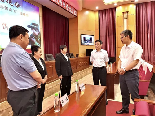 集團(tuán)黨委書記、董事長張旭東與集團(tuán)黨委班子一同聆聽報告會,并在會前親切接見了報告會成員。